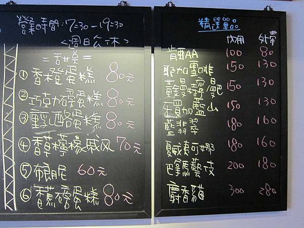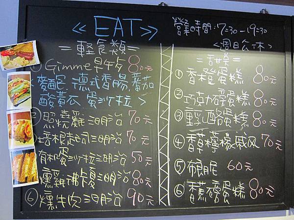 牆上小小的黑板寫著全部的輕食跟蛋糕。