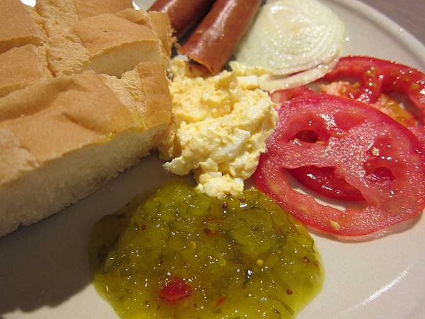 附有麵包、德式香腸、番茄、酸黃瓜、蛋沙拉、奶油一份)